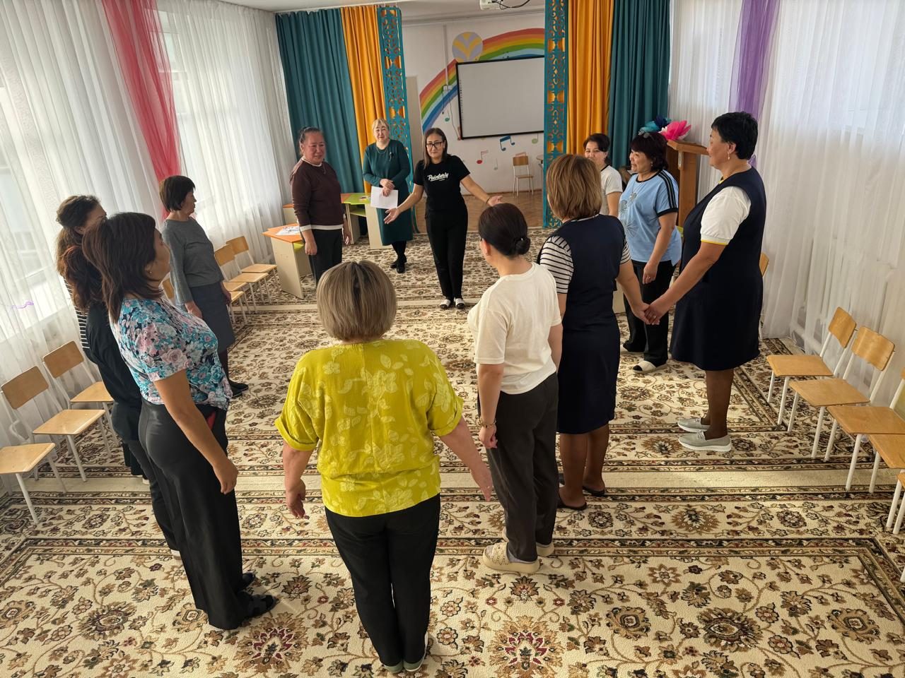 Педагог-психолог: Қайырлы күн! Бүгінгі тренингімізге «Командалық жұмыс – табысты ұжым негізі» қош келдіңіздер! Сіздермен кездесіп, біраз демалып, ойнап, өзіміз және әріптестеріміз туралы жаңа нәрселерді біліп, ең бастысы – бір-бірімізбен кездескенімізге қуаныш білдіруге мүмкіндік алғанымызға өте қуаныштымын.